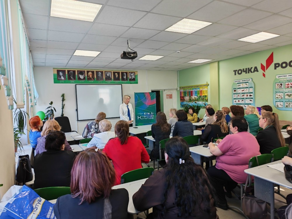 В.А. Трусихина, региональный методист и учитель химии и биологии МБОУ «Чалнинская СОШ», поделилась опытом реализации проекта «Классная культура» и рассказала о молодежном педагогическом движении «Молодость, мастерство, масштабность». Она также затронула тему всероссийских образовательных площадок, которые способствуют профессиональному росту педагогов.